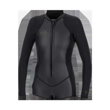 The HyperFreak FrontZip Jacketfeatures awindproof chest and backplusour RecycledTechnoButter3Xneoprenecontaining90% ormorerecycledfibers inthe liner fabrics.Thisexclusive technologyweighs20% lighter with30% lesswater absorptionthanany other premium neoprene. HyperFreaktopsdefine warmwater gear.
