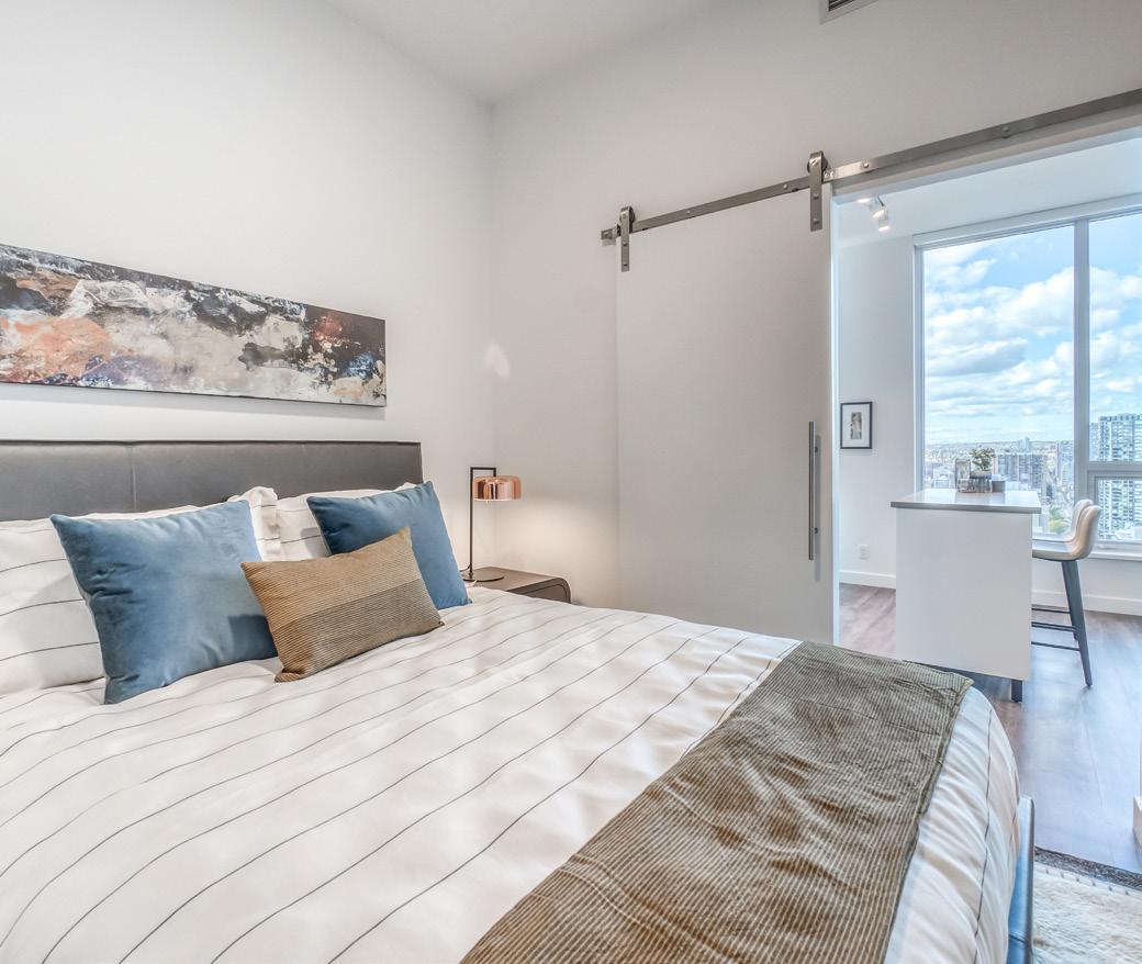 This new design-forward community envelopes you in a VIP experience with incredible resort-style amenities at BLVD Club, including an outdoor pool, twostorey fitness centre, rooftop gardens, stunning Sky Lounge and terrace, golf simulator, outdoor cinema, basketball court and a state-of-the-art kitchen.