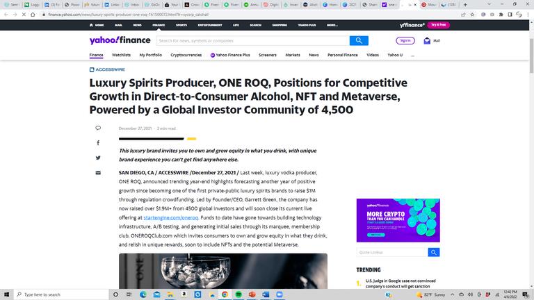 Over the last two years, ONE ROQ has been recognized by New York Weekly, Yahoo Finance, Bevnet.com, Nasdaq.com, Bloomberg, and hundreds of online news outlets and business journals.