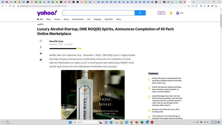 Thankfully, in 2022, Heath Hettig and I, along with a few of our exempt Members, reinvested capital and time to keep plans moving forward, and together, completed a final technology corner of ONE ROQ's DTC strategy, with Marketplace - a feature that aims to lower online prices of ONE ROQ and thousands of popular and rare wine & spirits brands through a low $12 monthly subscription. The move is part of a strategic vehicle to build sales of ONE ROQ's core products; create organic synergies with larger suppliers (prospective acquirers); generate a scalable new revenue stream; and expand our potential future value by 20x than that originally forecasted