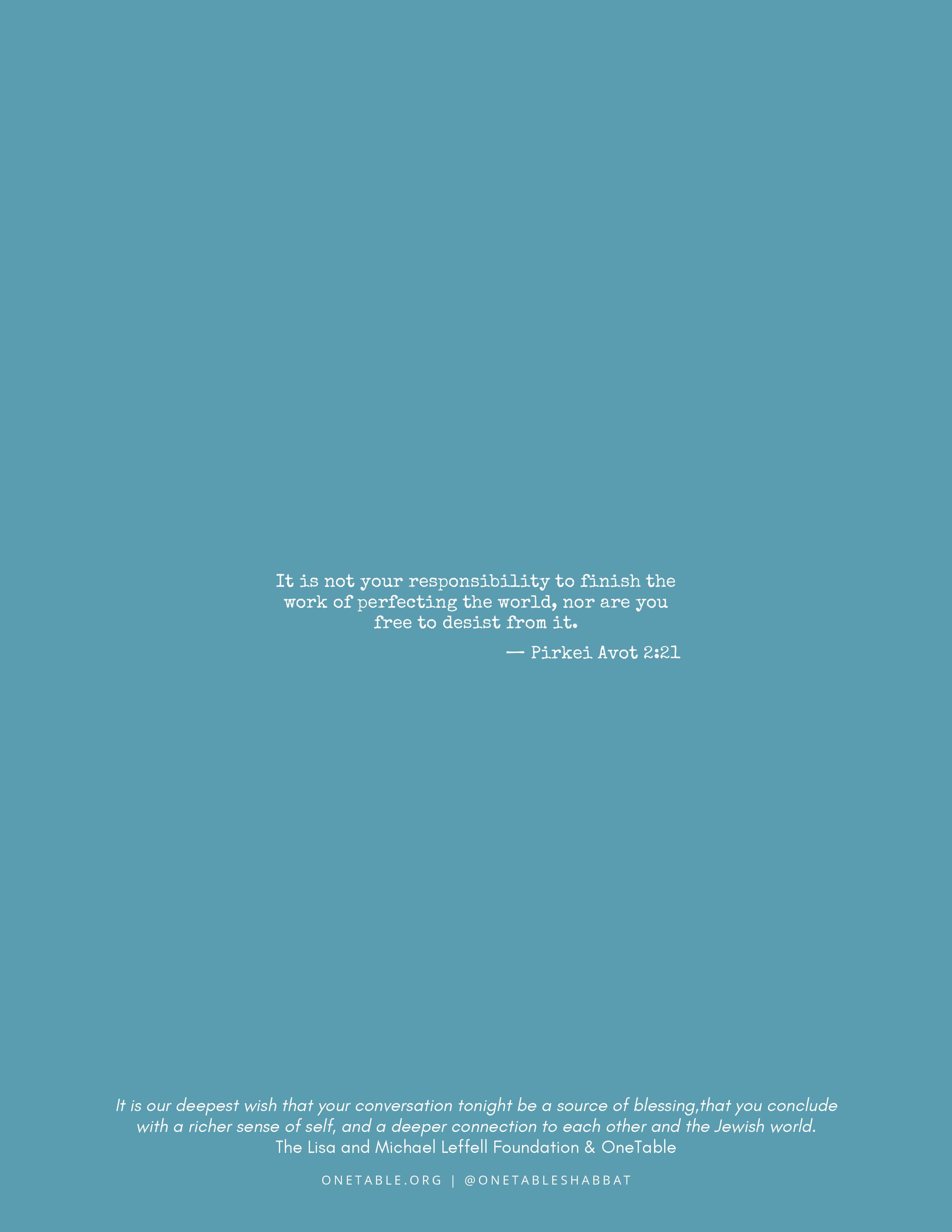 Why "Why Be Jewish?" We believe that conversation is as important to Friday night as elevated ritual and delicious food, yet it often gets the least amount of attention as we prepare for Shabbat. Asking this question Why Be Jewish? can be a revelatory opportunity to go deeper, learn more, and leave the table not only full but fulfilled.