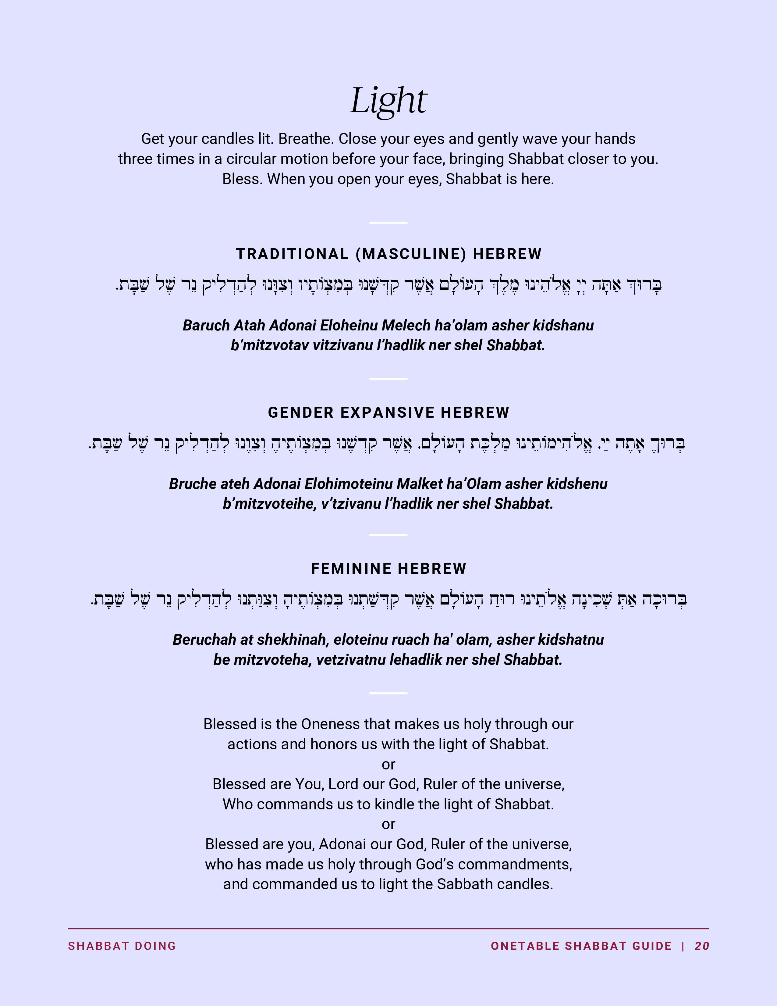 We invite you to hold tradition in one hand and your beliefs, experiences and passions in the other. Every week Shabbat dinner offers a chance to take a break and be fully present. Ritual and blessings might help carve out a moment to connect with yourself and others.