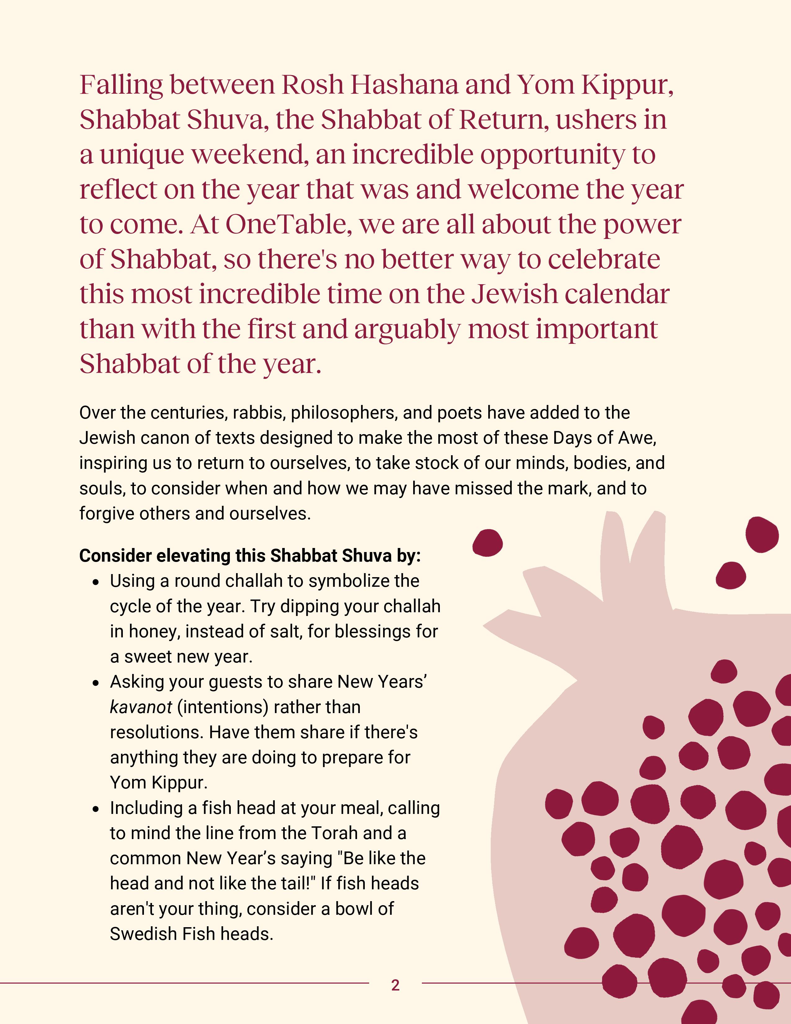 Shabbat Shuva Dinner Guide 2025