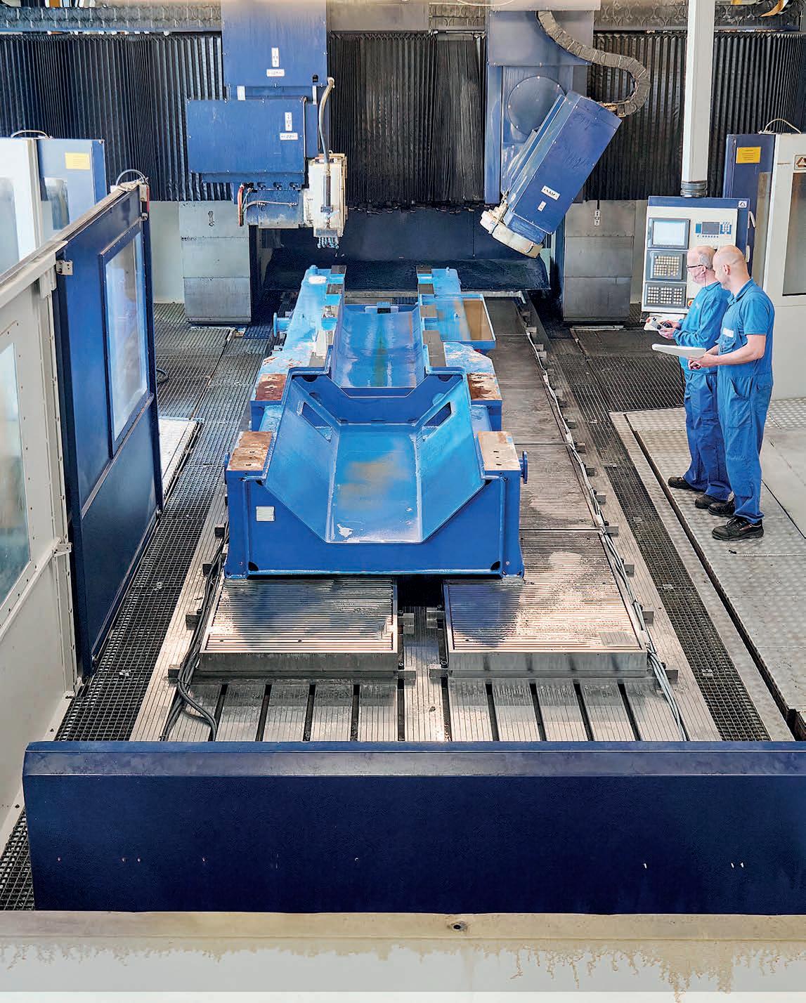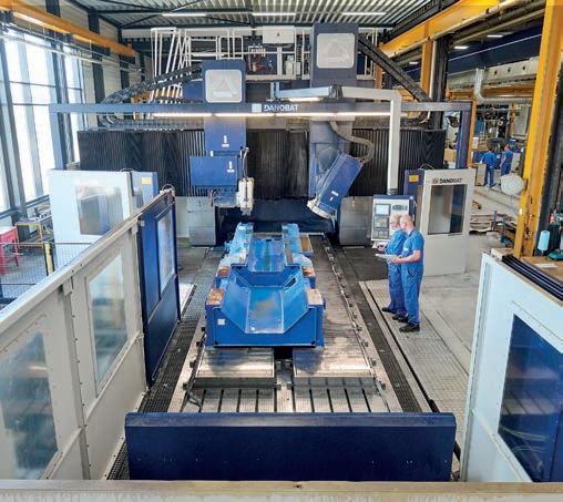 afgerond en de eerste bewerking zit erop: een cilinder van bijna 45 ton uit gereedschapsstaal voor de hightech machinebouw. De Vertiram is uitgerust met vier spindelkoppen: één hoge-toerenkop en drie lage-toerenkoppen. Het gereedschapsmagazijn biedt plaats aan 384 gereedschappen, ruim het