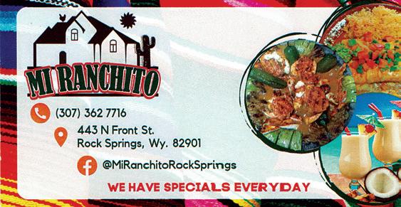 STEAK SEAFOOD FAMILY RESTAURANT 10 Purple Sage Rd Rock Springs, WY 82901 307-382-0091 www.loginnrestaurant.com 166 Foothill Boulevard Rock Springs, WY 82901 RENTALS & SALES 10% OFF COUPON Exp.12/31/23 Thurs: 11-9:30 / Fri - Sat: 11-10:30 2518 Foothill Blvd, Rock Springs / (307) 382-2833 Taqueria Vallarto Tues - Sat: 11-9 | Sun 11 - 8 | Mon: Closed 2506 Foothill Dr 307-382-2301 3 4 5A 5B 201 B St., Rock Springs, WY 82901 (307) 362-3138 Monday through Saturday 10:00am to 5:00pm Scan to Visit Our Website We Do Business One Way, Your Way! Sales: 307-362-5677 Service: 307-362-5677 2200 Foothill Blvd Rock Springs www.whislerchevy.com 6 7 6