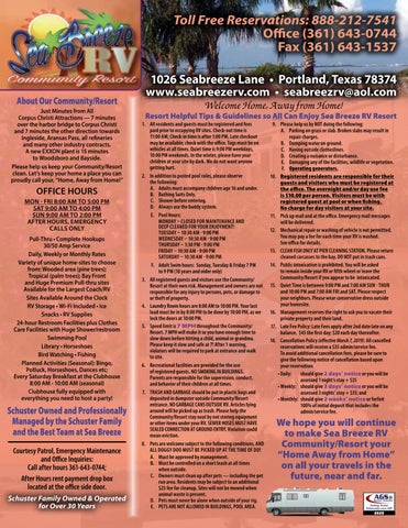 We hope you will continue to make Sea Breeze RV Community/Resort your “Home Away from Home” on all your travels in the future, near and far.