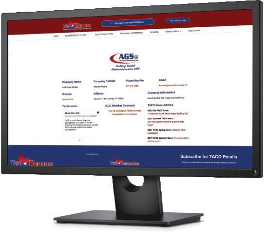 • Listing as an official TACO Vendor on our member website www.TACOMembers.com