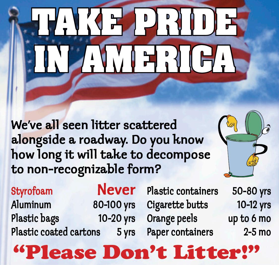 - Please dispose of all trash (including cigarette butts) in the proper trash receptacles located throughout the park.
