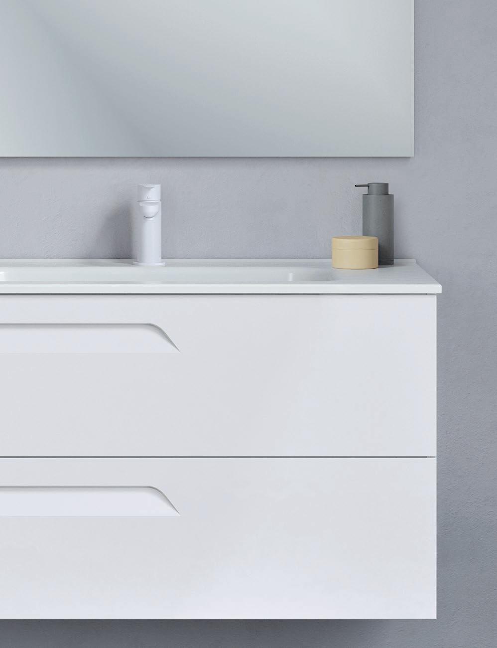 40 in · 2 Drawers TECHNICAL FEATURES GREY ELM WHITE OAK SAND MATT MATT WHITE More information FINISHES Mio unit Depth 18 White Oak Grey Elm Sand Matt Matt White 40 2 Dr. 127818 126977 126978 126976 40 Wrapping foil in 2D Wrapping foil in 2D Wrapping foil in 2D Wrapping foil in 2D 22 Slim sink Thickness 1 Ceramic sink Gloss White 40 123344 Sink depth: 5 in 40 18 Marble stone top + Taos sink Marble stone top Mineral cover sink Marble Stone Matt White 40 12630918 - 126290 Sink depth: 5 in 40 18