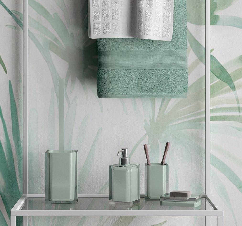 Realizzata in acciaio inox e Cromall® con contenitori in vetro satinato