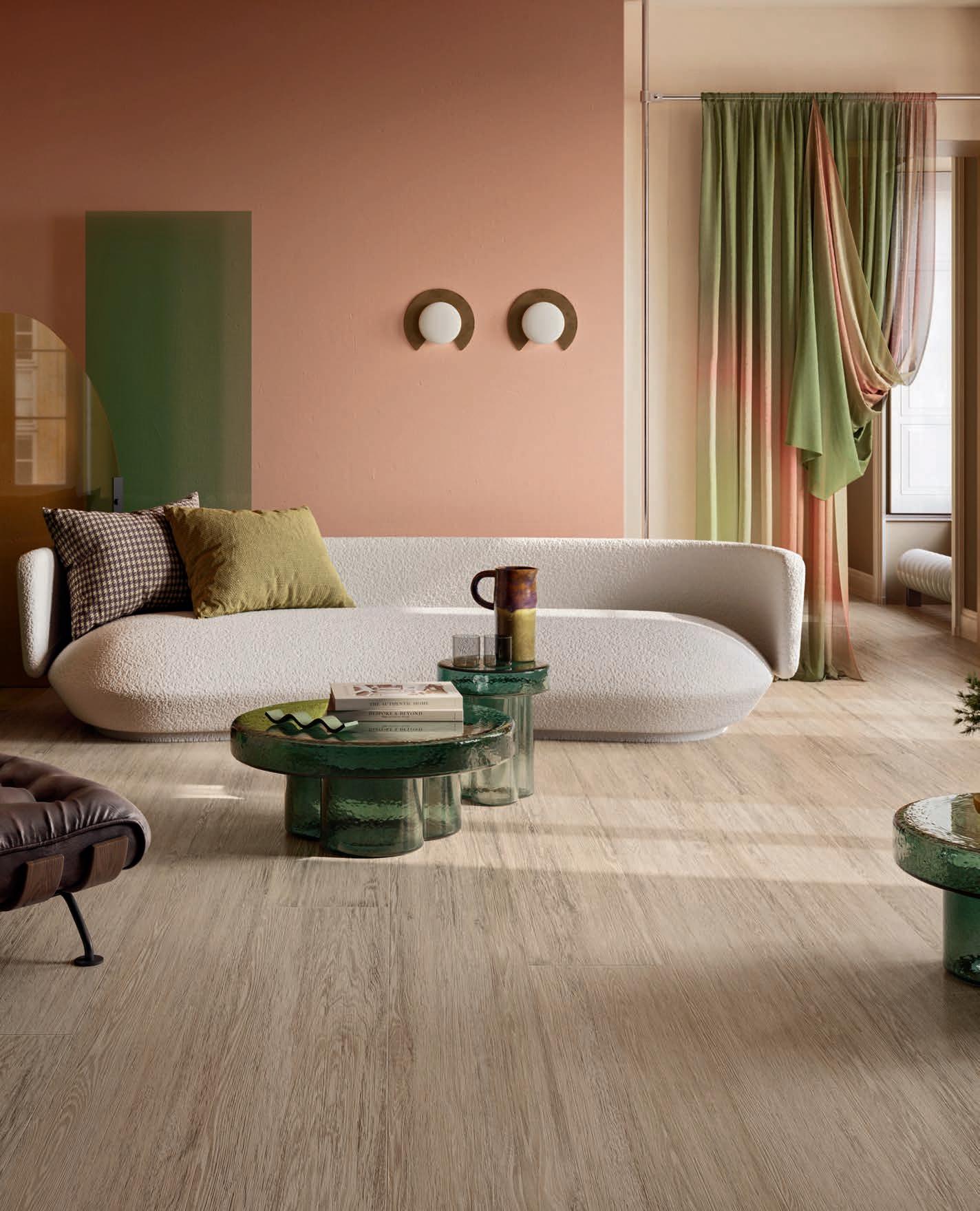 Sunwood est la collection en grés ceram qui vit dans les nuances chaudes du bois qui rencontre le soleil; les éléments qui dessinent une ambiance vivante et accueillant.