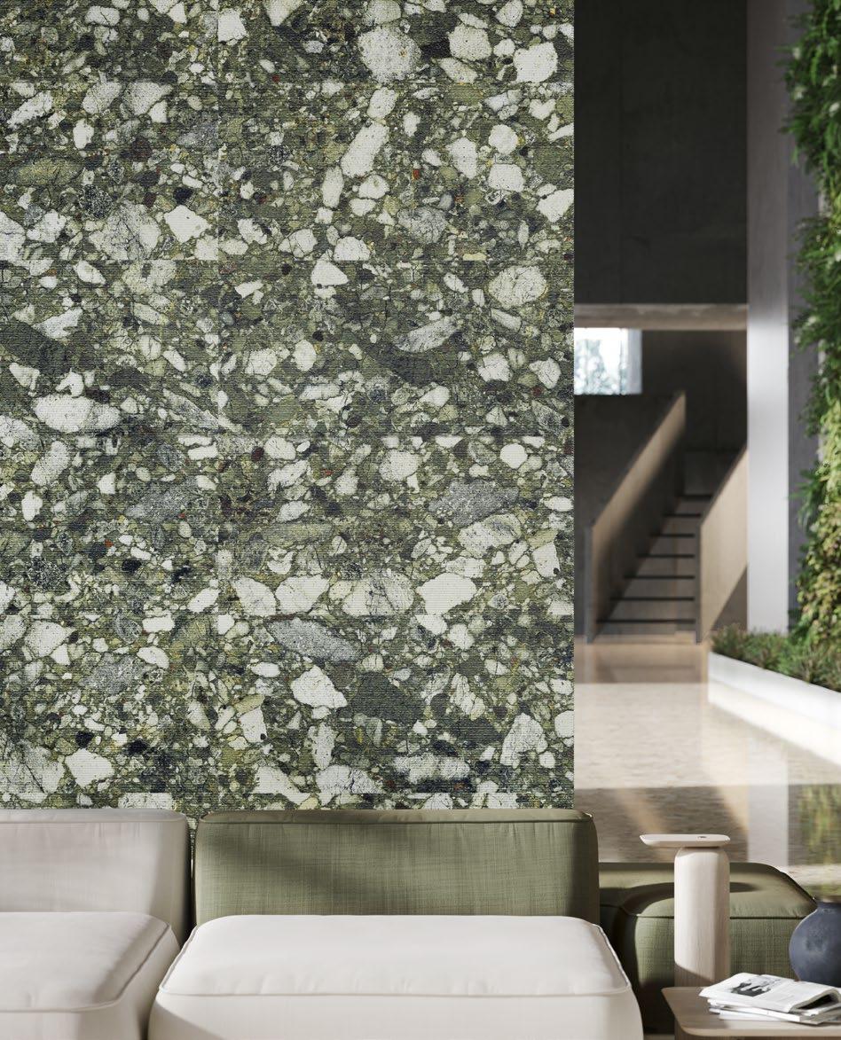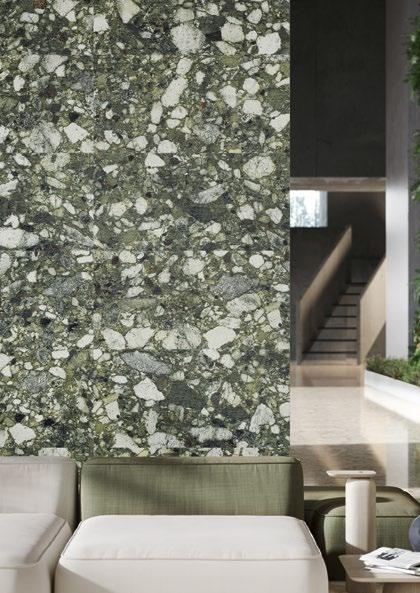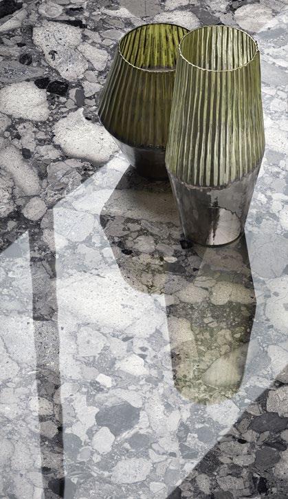 THE DECISIVE AND ICONIC GRAPHISMS OF BRECCIA STONE, FOR EVOCATIVE VIEWS THAT FIND THEIR INSPIRATION IN NATURE.