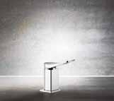 The concept of a circle inscribed in a square is taken up both in plan and in profile, over all perspectives on the product. In plan, the rounded body on the back of the tap is inscribed in the square of its base. In elevation, the same pattern is repeated on the circular cut of the lower profile framed in the square linearity of the body of the tap; finally, the circle inscribed in the square pattern is presented in an elegantly discreet way by the round detail embossed under the square end of the handle.