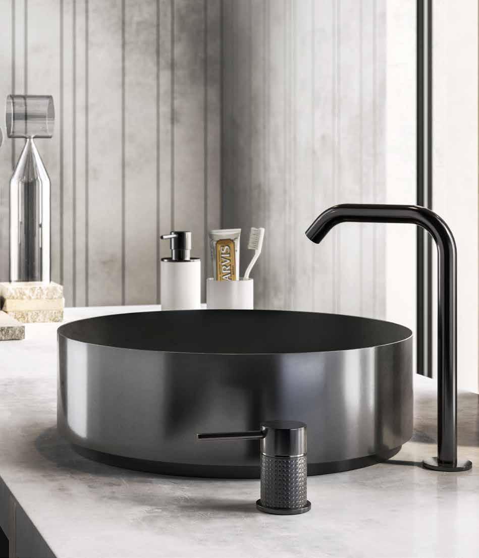 Gessi’s Creativity and style infuse a total new perceptibility into steel itself, giving a material which is usually “technical” and cold, an unprecedented heat, and a special furnishing capacity. Gessi has indeed enriched the body of the faucet with aesthetic and decorative details, such as textures and patterns with different tastes; the steel seems thus “dressed” by the texture. Handles and distinguishable reed valves, finishes of contemporary charm, and an innovative modular sink system complete the possibilities for customization.