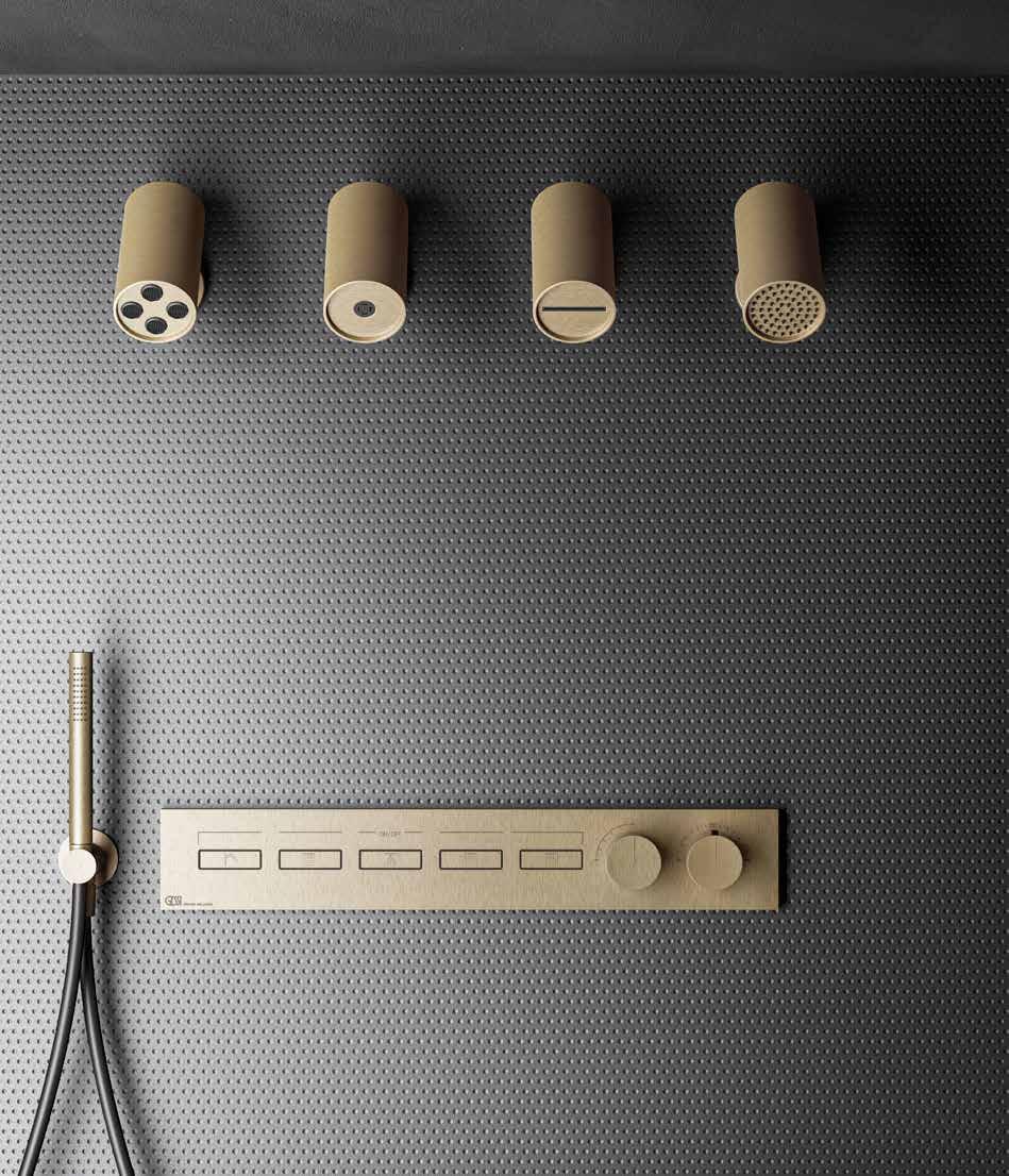 The concealed “in-line” Hi-Fi thermostatic mixers are the brainchild of the joint work of creatives, designers and engineers. They represent one unprecedented design for a technical instrument aimed at selecting and controlling water functions in a shower. Ultra-flat and uber-elegant, these sculptural objects for wellness, are available in multiple versions, with 2 to 5 outlets, controlled by very intuitive buttons while featuring extremely refined details.