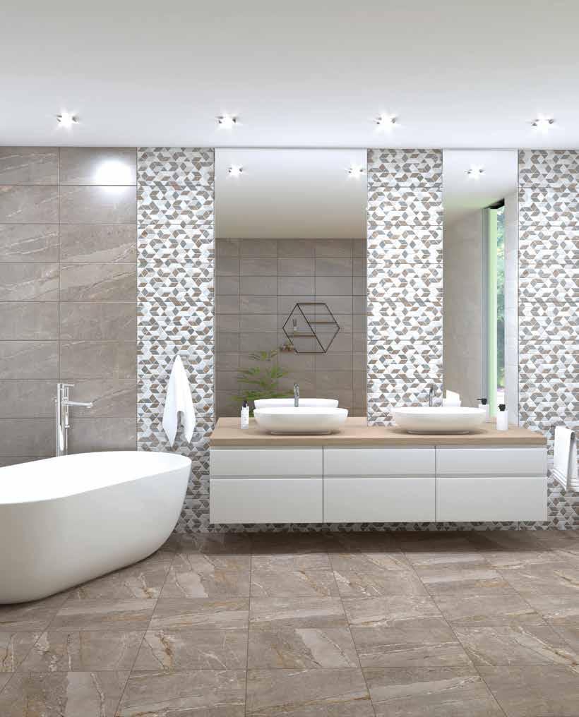 The calm tones and subtle details of the graphics make the Vega series an ideal choice for all lovers of minimalism. Thanks to the neutral colors, this tile gives the space a clean and tidy look, which makes it very easy to fit furniture and different colors of details along with it.