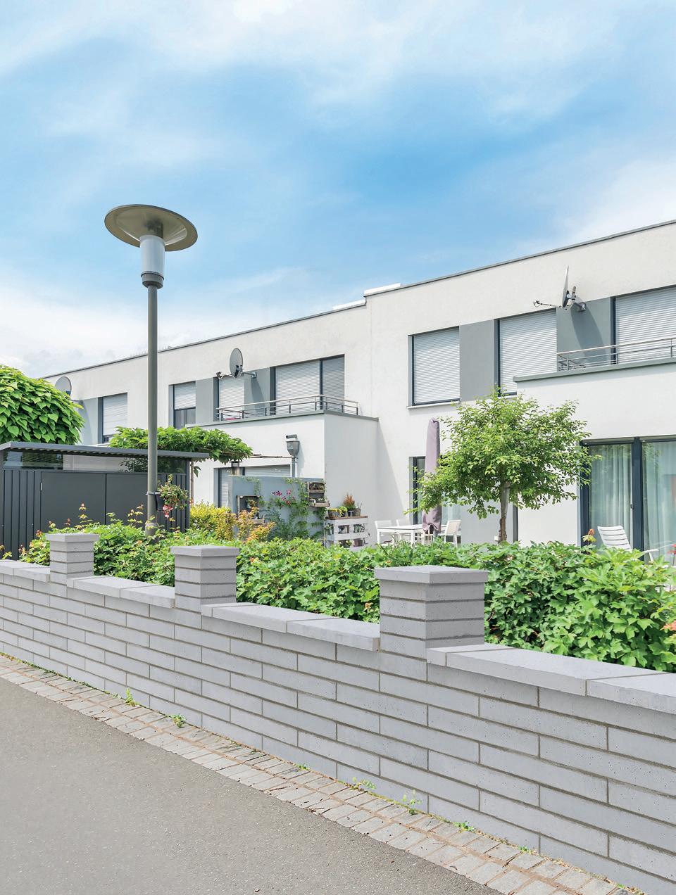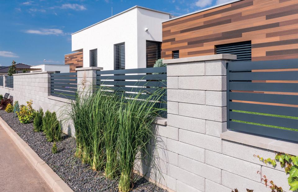 A karcsú és visszafogott kialakításának köszönhetően ez a mod ern kerítésrendszer bármilyen környezetbe kiválóan illeszkedik. Bradstone Lias kerítésrendszer, 108. oldal