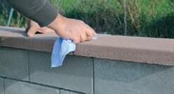Vízmértékkel állandóan ellenőrizzük az egyes elemek síkját. Hasonló módon rakjuk le a többi sort is. Minden sor (de legfeljebb minden 2. sor) után öntsük ki betonnal és tömörítsük az üregeket.