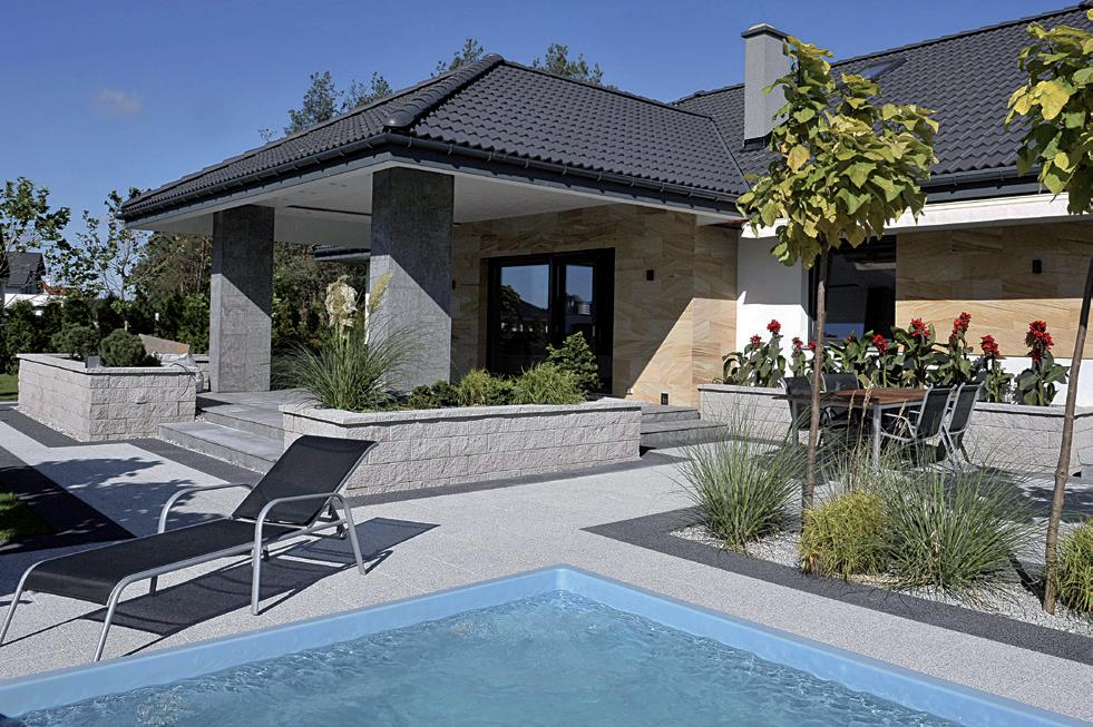Izgalmasan tagolt, letisztult formavilágú térkő. A Ventura Kombi térkővel burkolt felület prémium megjelenést kölcsönöz kertjének. Ventura Kombi térkövek, 28. oldal