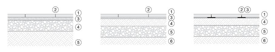 ➀ betonlapok (burkolólapok) ➁ fuga távolság a lapok között 3-5 mm, fugahabarccsal fugázva ➂ habarcságy, vastagsága 10-20 mm, ragasztó trasszhabarcs középvastag ágyhoz