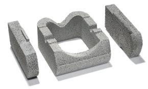 Az idomok első sorának lerakása után az üregeket legfeljebb 8 mm-es szemcséjű, C25/30 osztályú betonnal töltjük ki. A beton olyan állagú legyen, hogy ne folyjon ki az idomok közti réseken. Az idomokban lévő betont tömöríteni kell. Ha a beton az idomra is kifolyik, azt azonnal el kell távolítani róla.