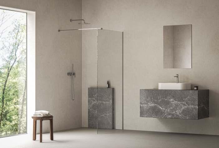 Az ajtó nélküli akadálymentes bejutás bőséges helyet biztosít a napi zuhanyzási rituáléhoz.