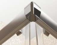 Üvegfelületek fényes fém elemekkel a légies és könnyed hatásért. Az építési pontatlanságokhoz való alkalmazkodás akár 15 mm-ig mindkét oldalon.