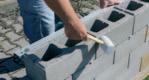 Kicsapózsinór segítségével kijelöljük a kerítés külső méreteit. Az idomok első sorát vastag habarcságyba fektetjuk. A falazáshoz M5 erősségű habarcsot használunk.