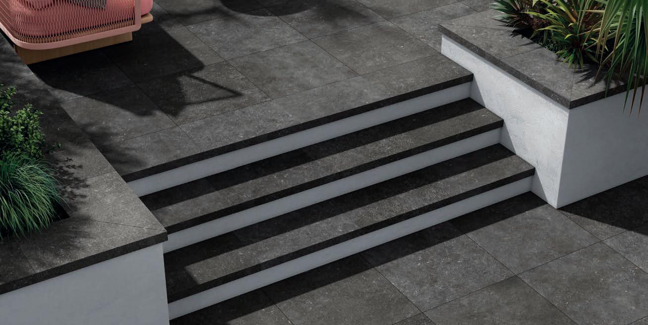 The high-quality porcelain of the Sintesi collections combines design, safety and durability in any weather condition: it is resistant to frost, wear and stains, and the colours do not fade over time.