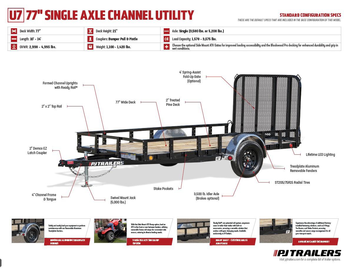 Whatever you’re dreaming about doing, our Utility trailers are ready for the task. They’re designed with the potential to add a wide variety of customizable options to ensure you have what you need to fulfill your dreams. From the 8’ single axle to the 22’ tandem (and everything in between) every trailer in this lineup is outfitted with premium materials and components to make sure you’re prepared for the long haul.