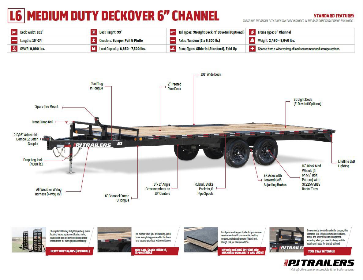 Designed and constructed for maximum load and surface and strength, our Deckover Trailers are purpose-built to handle the most challenging adventures. Ranging from 16 to 44 ft, they’re available in bumper pull or pintle-eye and in various axle configurations—with hauling capacities ranging from 14,000 to 25,000 lbs.