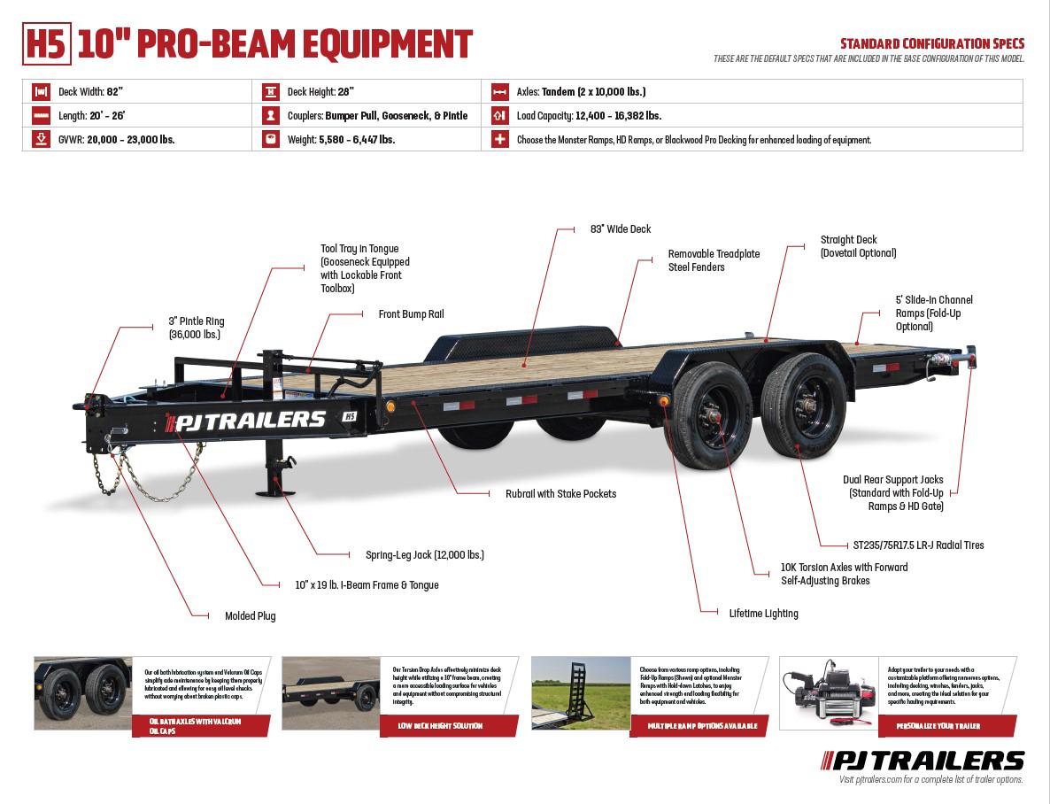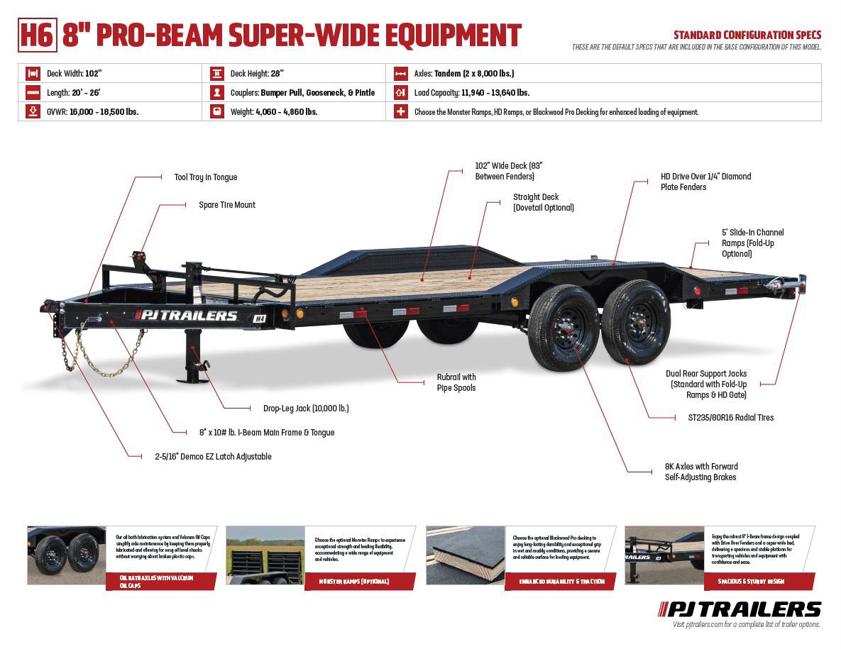 Featuring lower deck heights for safe and easy vehicle transport, our Equipment Trailers are designed to accommodate a wide variety of vehicles, tractors, and powered equipment. With super-wide deck options available, our Equipment Trailers offer hauling capacities that range from 4,500 to over 17,000 lbs.