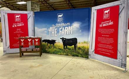 Three signs, 24 inches by 32 inches, velcro back. This display educates viewers on how beef cattle and pasturelands preserve the environment through a farmer’s committment to the land, water and air. Viewers are asked to move the detachable icons to the appropriate farm/pasture scene.