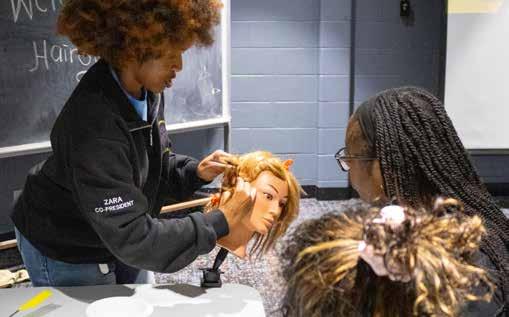 The workshop was divided into focused groups: styling with extensions, natural hair techniques, beginner instruction and advanced skill-building. During the workshop, students shared their challenges, from repairing damaged curls to mastering difficult techniques. They exchanged hair care remedies, practiced on one another and embraced the patience required to try again.
