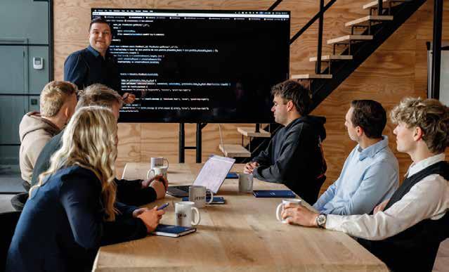 Backstage AV Duurzaamheidsstraat 6 80945 SB Hattemerbroek 038 75 028 30 info@backstageav.nl www.backstageav.nl kantooromgeving. ‘Microsoft Teams is min of meer de standaard geworden, dus je ziet dat de zakelijke werkomgeving verandert. Doordat mensen meer thuiswerken, wordt de vraag naar een werkplek op kantoor minder. Daar moet je als bedrijf toch in mee. Wat je nu veel ziet, is dat er een slimme kantooromgeving wordt gecreëerd waarbij je van tevoren vergaderruimtes en werkplekken moet reserveren. Daar hebben wij dus onze ruimtereserveringssystemen voor’, aldus Richard die ook het einde van de traditionele receptiebalie voorspelt. ‘Bedrijven gaan meer op de digitale toer met een interactieve zuil waar je je kunt aanmelden.’ Het nieuwe bedrijfspand krijgt alle aandacht in dit artikel en dat is terecht, maar we stappen daarbij misschien wel wat gemakkelijk over de ambities van Backstage AV heen. Niet voor niets is in 2024 al het bedrijf For Conference in Almere overgenomen. Een strategische aankoop. ‘Met dit verkoopkantoor zijn we verder in het land actief. Het is ook psychologisch. Bedrijven in het westen van het land vinden Zwolle soms te ver weg en kiezen bijvoorbeeld wel voor een bedrijf uit Almere. Dat er in de loop van de tijd dus nog een bedrijf bij komt, is best mogelijk.’
