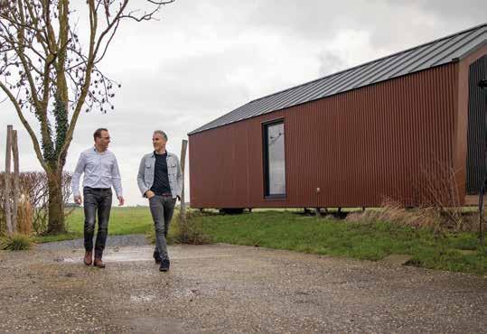 maar dat wil niet zeggen dat we geen verbeterpunten zien. Want hoewel The Next Weekend in de basis is opgezet om extra inkomen voor de boer te genereren, valt of staat alles met de beleving van de gasten. Dus wilden we vooral weten: wat is er prettig of minder prettig aan het verblijf? Waar zie je verbeterpunten?’ Erf1, eigenaar van de eerste lodge, kan er dus op rekenen dat op termijn de eigen lodge zal worden vervangen door een geheel nieuwe, verbeterde lodge. ‘En je moet er niet aan denken dat we dit bij tientallen andere projecten ook hadden moeten doen’, verzucht Tom. Want, zoals gezegd: overal wil hij dezelfde accommodatie, zodat je bij The Next Weekend altijd dezelfde kwaliteit en luxe, waar dan ook, kunt verwachten. Juist dit blijkt ook een goed argument om met gemeenten om de tafel te zitten om het bestaande bestemmingsplan te wijzigen. ‘Gemeenten zien de recreatieve meerwaarde van dit soort initiatieven. Tegelijkertijd zijn ze er ook wat huiverig voor om zomaar aan een willekeurig plan van een boer tegemoet te komen, omdat ze vrezen voor permanente bewoning. Men is huiverig voor wildgroei. The Next Weekend gaat voor kwaliteit en comfort; alles volgens dezelfde standaard. Dat wekt vertrouwen. Gemeenten vinden het fijn dat boeren door ons gefaciliteerd worden en dat er niet alleen een doordacht plan, maar ook kwaliteit wordt geleverd.’