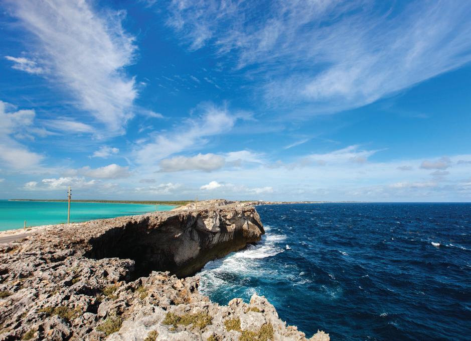 The Glass Window Bridge spans a sliver of land separating the deep blue Atlantic from the Bight of Eleuthera.