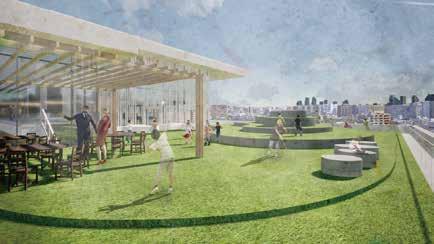 屋上公園、金沢城公園・椎木広場・金沢の繁華街を展望 できる多くの子どもがにぎやかにしている様子がほかの フロアへと広がっていく