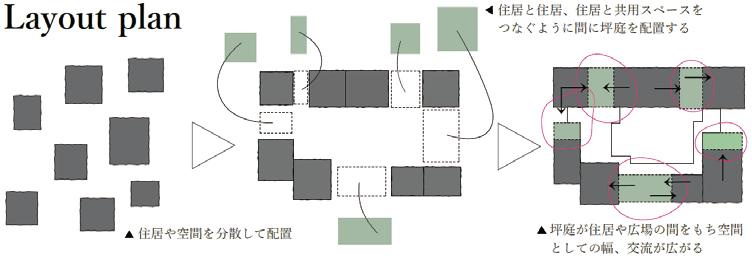 異なる機能空間をヴォイドに配置