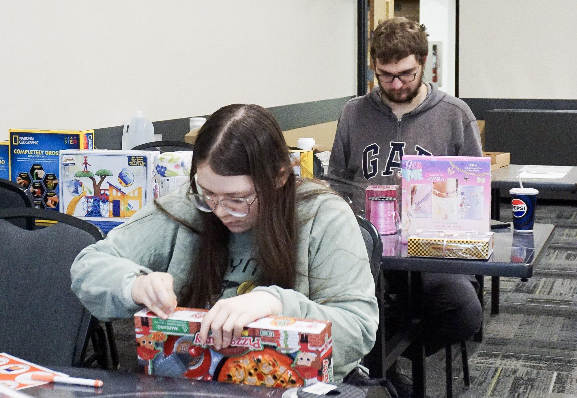 As the event kicked off, students were provided with cellophane, ribbon and stickers to wrap gifts. A variety of toys suitable for all ages were displayed on tables for students to package. Light refreshments were also available as students wrapped gifts throughout the event.