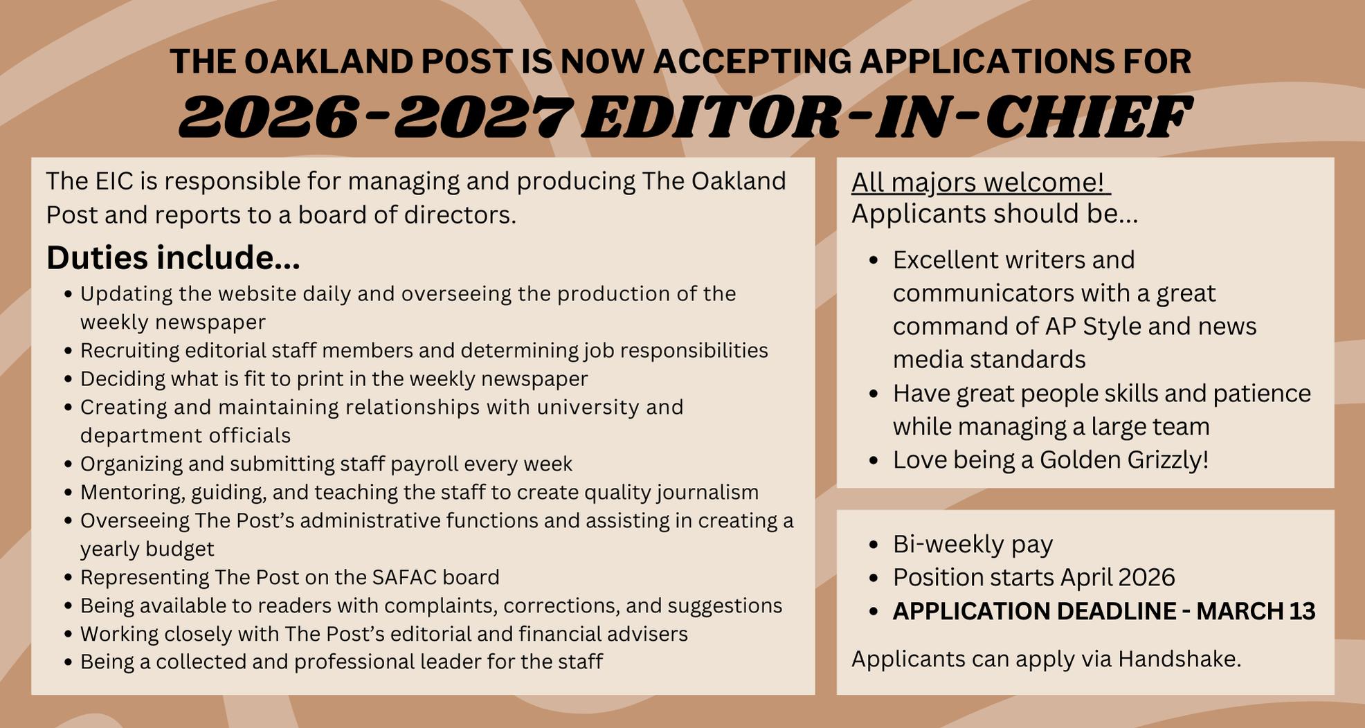 Adrian Jimenez Morales Editor-in-Chief ajimenezmorales@oakland.edu