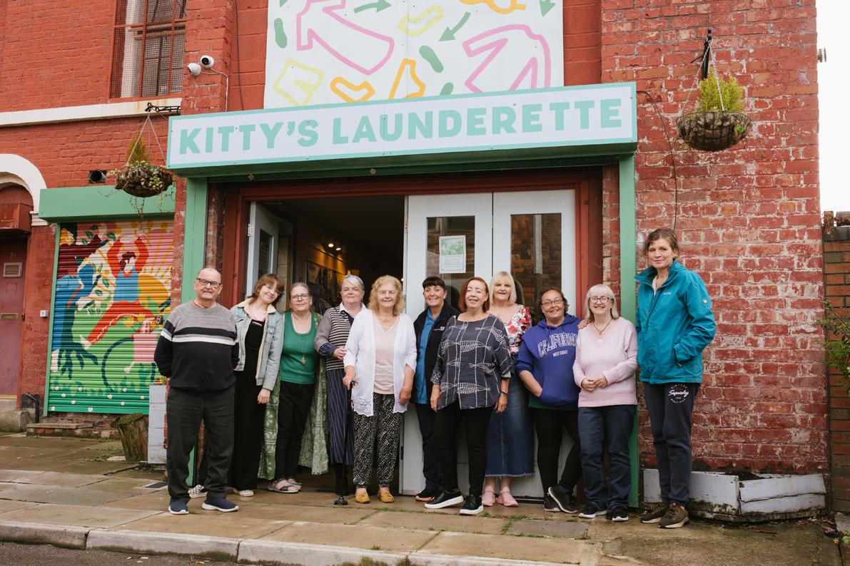 Kitty’s is also known to host community events and is a warm hub that offers support during washing hours through various initiatives including the knitting club, tea and toast mornings and creative groups. As a member of the writing group, believe me, you need to make yourself heard over the machines. It’s brilliant practice for making your voice heard in presentations. The writing group has had a book published, ‘The Flowers Still Grow’, and we were invited to The Open Eye Gallery in the city centre for an exhibition and launch event. We’ve had Christmas events at Kitty’s too. Everyone who works at Kitty’s is so warm and welcoming to us. After hours Kitty’s is host to a multitude of events; film nights with food provided; live music and poetry; history talks; photography exhibitions, and creative workshops. Tate Liverpool have recently run workshops here too.