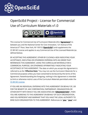 OpenSciEd Project - License for Commercial Use of Curriculum Materials v1.0