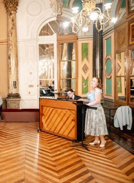 We zijn weer in de salons van de opera beland, waar alles in gereedheid is gebracht voor het tweede deel van de avond. Wie dat wilde, kon zich inschrijven voor een liefdadigheidsdiner, alweer ten voordele van het scholenproject. Op het menu staan naast gerechten met een Gentse toets (met lokale ingrediënten zoals de befaamde Tierenteyn pickles en biologische briochetoast van het Gentse Compaan) ook muzikale intermezzo’s, waarin zangers van het Jong Ensemble van OBV hun opwachting maken. Dat Jong Ensemble, dat dit jaar bestaat uit Emanuel Tomljenović, Jessica Stakenburg, Samson Setu en Sawako Kayaki, wordt eveneens ondersteund door de Vrienden.