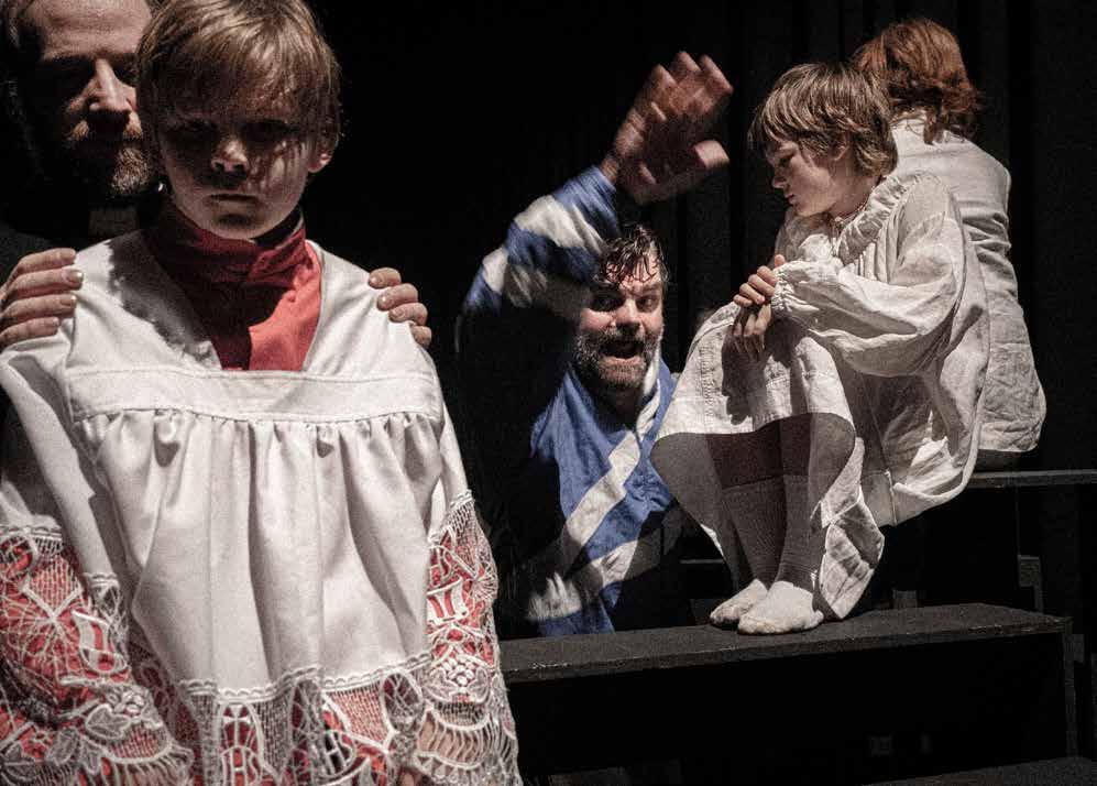 Houbrechts ademt grote gebaren. Niet alleen in de familiegeschiedenis die ze behandelt, ook in de beelden die ze maakt en de muziek die ze daarbij gebruikt. Ze grijpt naar Bach in die bijzondere combinatie van plat en hemels, banaal en heilig. Erbarme dich combineren met de scène van seksueel misbruik kan van slechte smaak getuigen voor sommigen,ik neem er gif op in dat je het nooit nog los van elkaar kan horen, dat deze Bachhit er voor eeuwig mee besmet is. Ook de combinatie tussen opgenomen barokmuziek, live-zang en elektronische samples of soundtrack zal voor de puristen een brug te ver zijn. Maar Houbrechts zet graag alle middelen in om een visceraal effect te veroorzaken van schuld en erkenning én schaamte, empathie én afgrijzen.