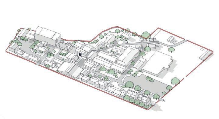 Proposals include a shaded pedestrian spine to link clinical departments, service roads to improve access, and re-purposing of historic buildings for nonclinical functions such as administration or volunteer accommodation.