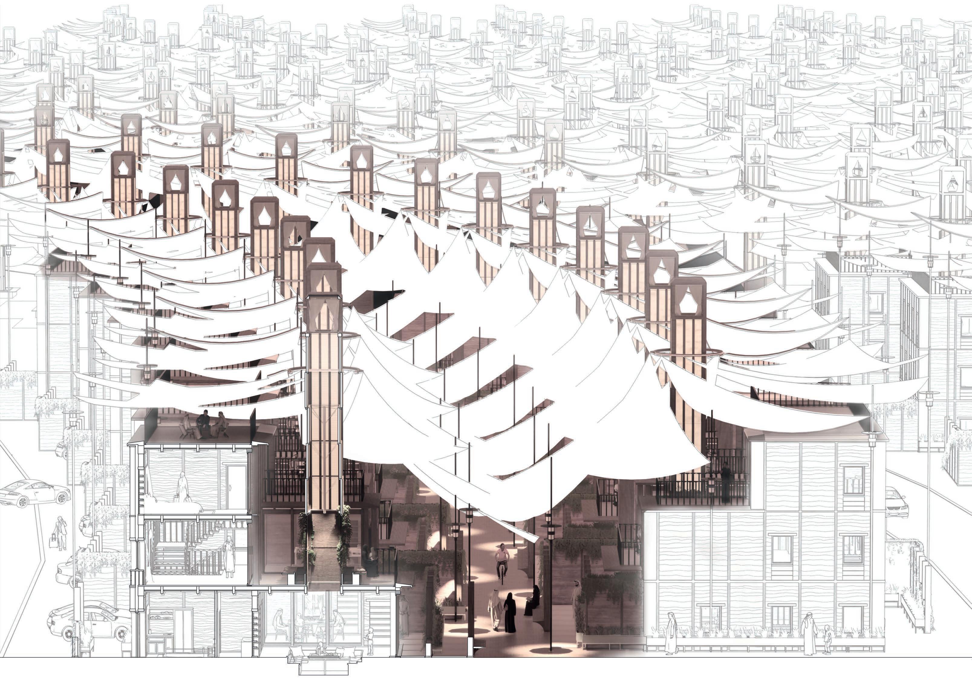 The Woven Dunes finds its roots in the strong national identity, community compassion, and rich cultural heritage of the Emirates. Its design reflects culturally appropriate sustainability, which emerges as a natural outcome of cohesive, community-based development. The Woven Neighbourhood’s benefits to the community are not only shaped by the values of its designers but also by the inherent advantages of sustainable