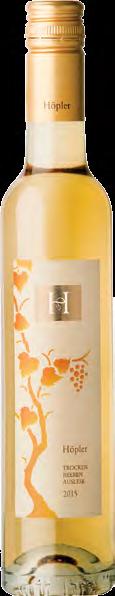 Golden in colour, this is a deliciously sweet dessert wine made from botrytized grapes. Huxelrebe and Ortega were cultivated at the southern end of the region, on the border with France. These are some of the warmest sites in Germany, with vines planted on deep and rich loamy soils. The grapes were left on the vine for a late harvest allowing the development of noble rot. Stepp Beerenauslese has aromas of fresh fruits and pears, and fresh orange flavours. The grapes were handpicked in November and underwent a short soak on skins before pressing. 80% of the juice was fermented in second and third-fill barrels, and matured for ten months on lees. It is very different; less sweet and fresher in style than Höpler’s Trockenbeerenauslese.