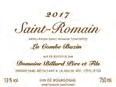 Ripe tropical fruit aromas of passion fruit and pineapple, complemented by a hint of coconut, exude from the glass. Soft and ripe on the palate, La Combe Bazin 2017 has good mid-palate weight leading to a fresh apple, lemon and long roasted pineapple finish. La Combe Bazin, in the Saint-Romain appellation, lies to the east of the village. 1.35 hectares of vines are planted on calcareous marl soils with bands of clay. The grapes were picked on September 5th and the wine was matured on lees for ten months in barrel, with 25% new Allier oak.