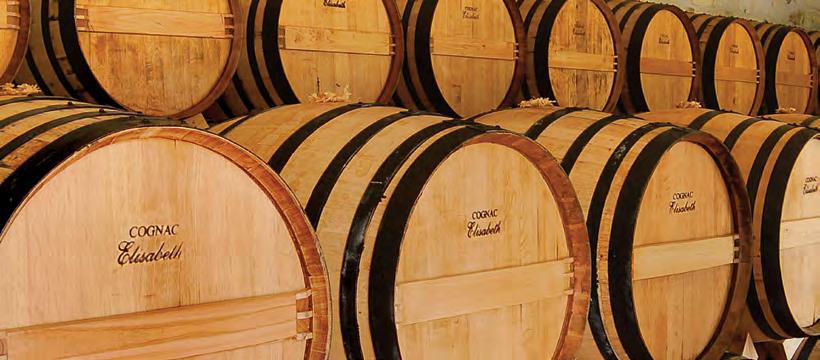 t he cognac region itself is divided into five crus. Domaine elisabeth and château Bellevue at Virollet in the Bons Bois region are owned by the Arrivé family. All vines are cultivated organically. c ognac is rated according to the average length of time in barrel and although there are minimal legal lengths of time for each level—Very special (V s) two years, Very superior Old Pale (V s OP) four years, e xtra Old (XO) six years, these are exceeded at Domaine elisabeth. t he art of producing fine c ognac is in the skill of blending the barrels and component parts.